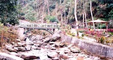 Flowers, flowing water, bridge at Gangamaiya.